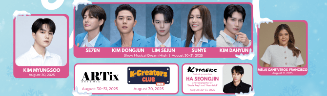 Catch live performances from the cast of ‘Dream High: The Musical’ featuring Se7en, Kim Dong-jun (ZE:A), Sunye (Wonder Girls), Lim Se-jun (Victon), and musical actor Kim Da-hyun and a romantic serenade from South Korean actor and singer, Kim MyungSoo, also known as ‘L’. High-energy performances of ARTix from the South Korean dance survival show ‘Street Dance Girls Fighter,’ world-renowned Taekwondo performance team, K-TIGERS, and the Korean Cultural Center in the Philippines’ Everyone’s KPOP winners will keep the stage sizzling.